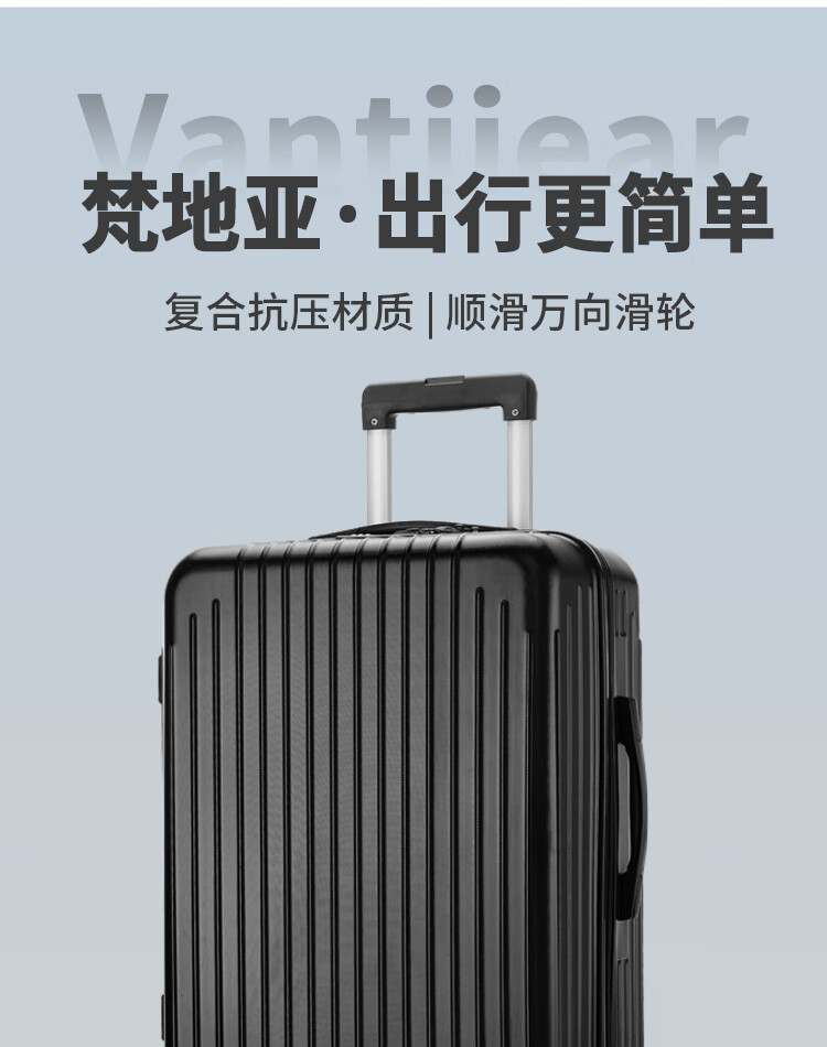 梵地亚(Vantiiear)行李箱男24英寸万向轮拉杆箱大容量旅行箱飞机女密码箱皮箱子黑色
