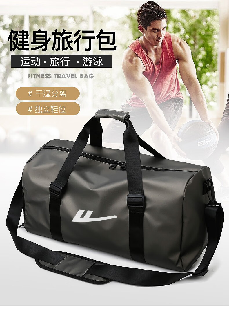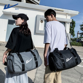 回力大容量手提包男旅游行李袋轻便干湿分离运动健身短途斜挎旅行包女 黑色+灰色青蛙挂件