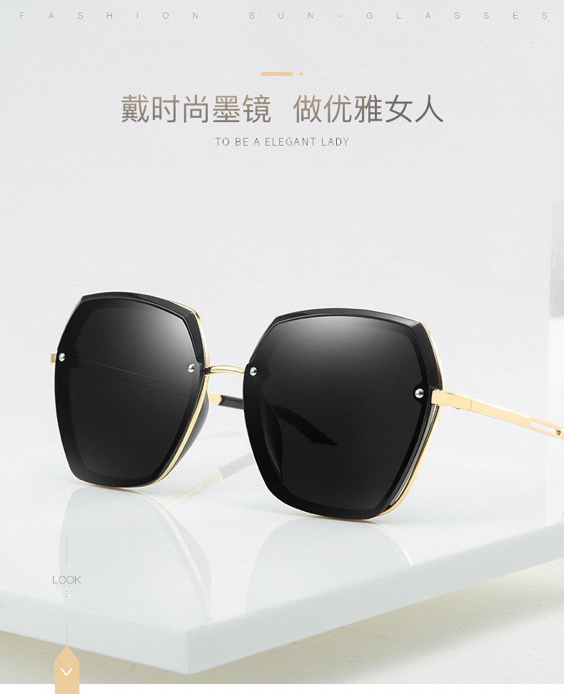 森罗慕彤太阳镜女大框高清偏光墨镜司机眼镜时尚女士眼镜圆脸明星款开车 2212黑金框灰片