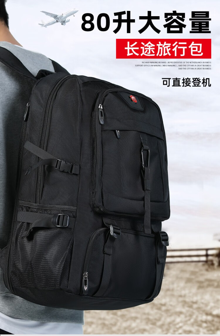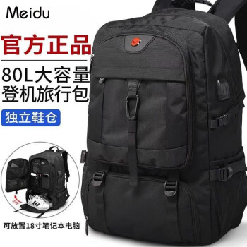 美杜 大容量【80L带鞋仓】男士双肩包出差旅游背包运动户外行李登山包 超大容量男士双肩包黑色【80L】