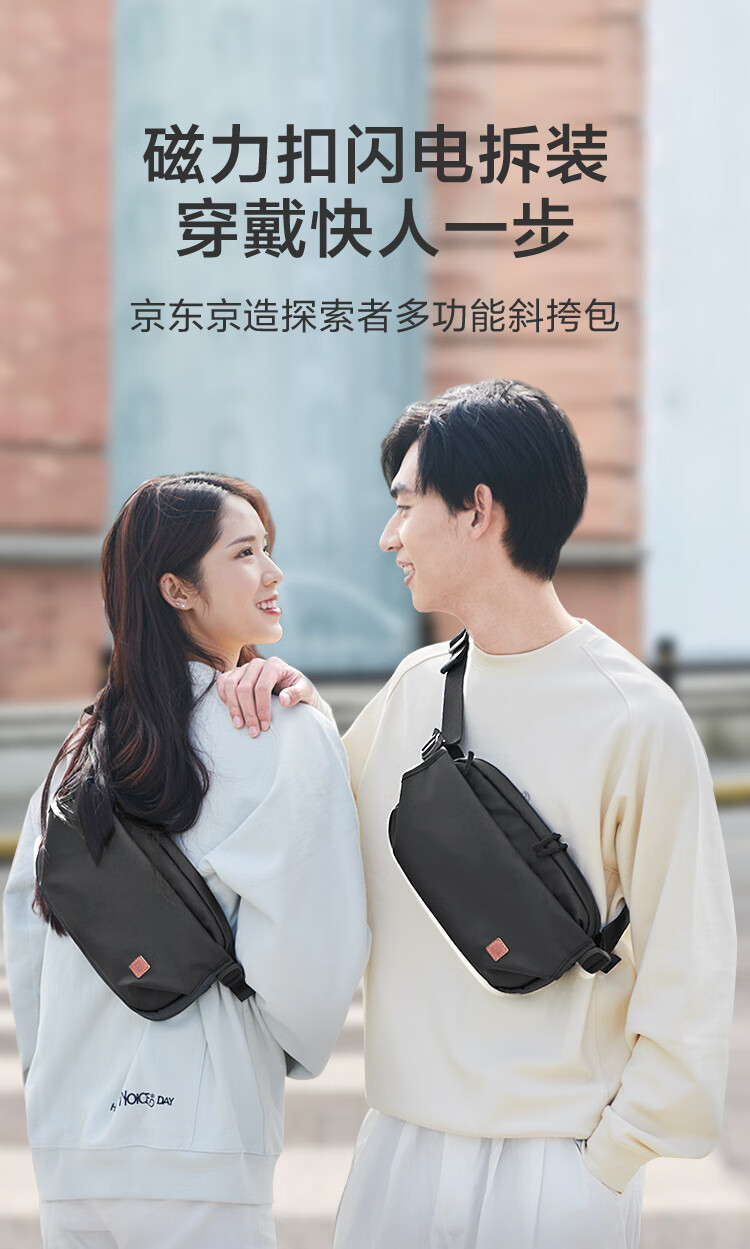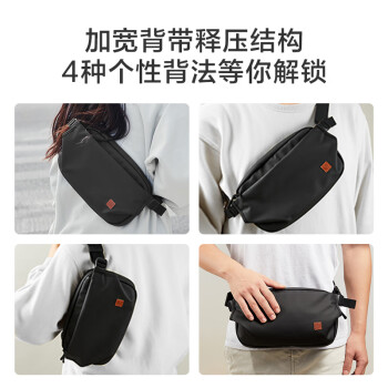 京东京造 探索者斜挎包男女胸包腰包大容量单肩背包休闲运动手机 黑色