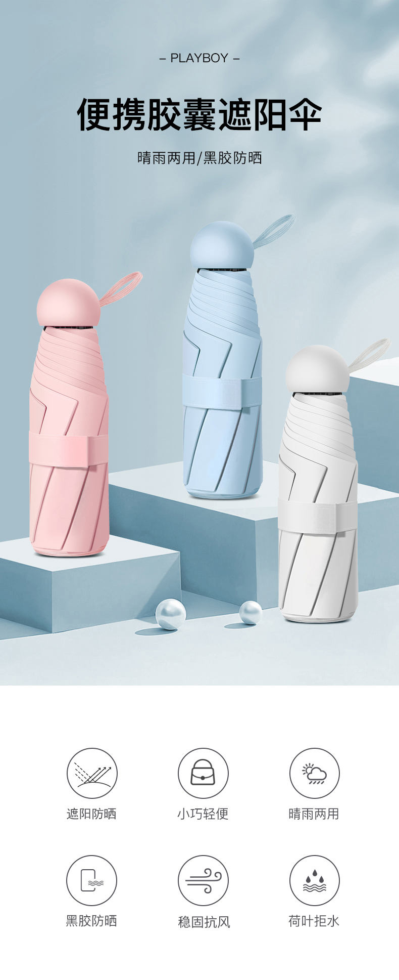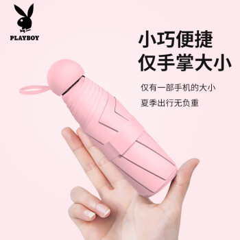花花公子(PLAYBOY)雨伞黑胶遮阳伞防晒五折折叠伞迷你伞手动太阳伞 粉色