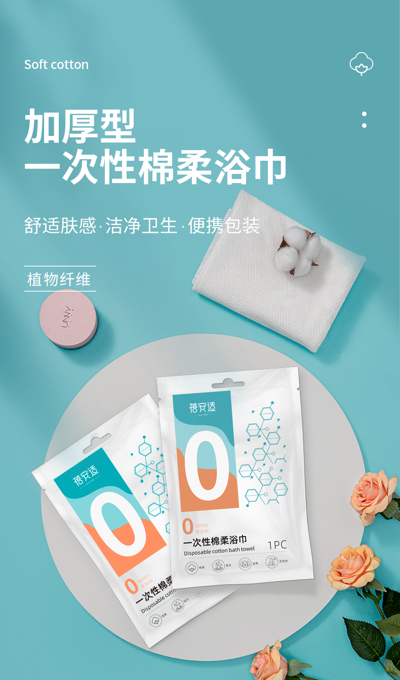 蓓安适一次性浴巾加厚大号珍珠纹出差酒店便携旅行毛巾浴巾棉柔巾 5包装